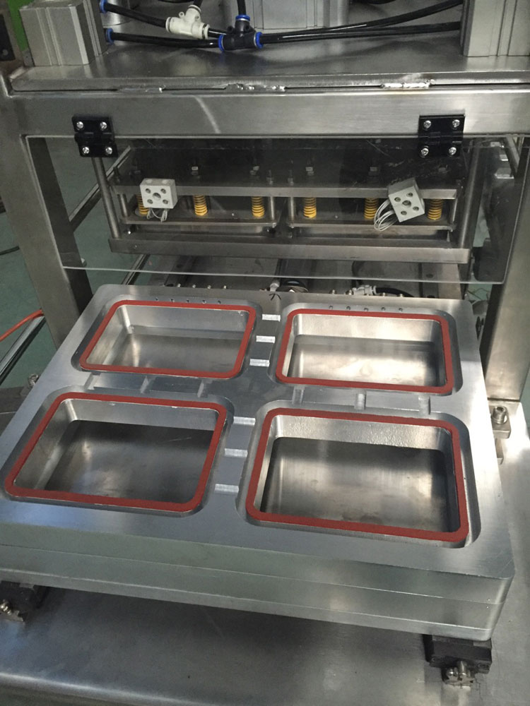 該機(jī)全部采用不銹鋼制造,結(jié)構(gòu)簡單,能很好地完成抽真空,充氣,封口、切邊的操作